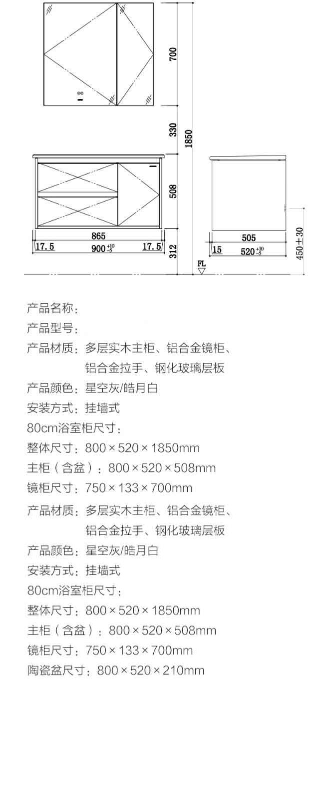 铝合金支撑脚 尺寸:175mm高,15mm可调,每副2个 开门后的实际宽度为950mm,为方便安装及使用,请预留足够空间